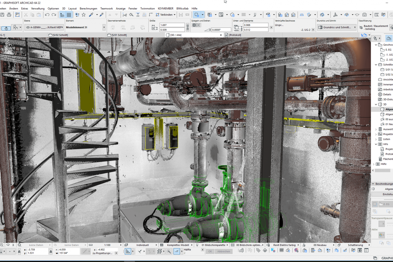 This solution allows to get a complete 3D model of the object, which can be used by both architects for analysis, design, forecasting of building features, and engineers for calculating internal engineering systems, editing them, and release of working documentation.