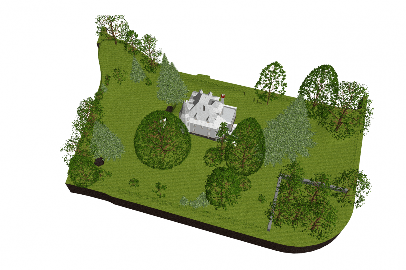The project was split into two parts. The first is to create a point cloud from the raw data using photogrammetry software. The second is to make an accurate model that includes the house, all trees and bushes with real trunk diameters, heights and tree species.